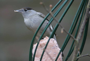 Blackcaps have a greyish overall appearance. The eponymous black cap is only found in the males; females and juveniles have a brown cap instead. The song is very similar to that of the Garden Warbler, but can be distinguished with practice. Blackcaps are found in parks, deciduous woodland and scrub, as well as at garden feeding stations.