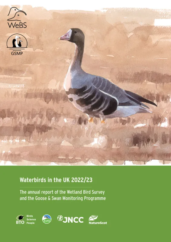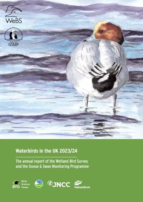 Waterbirds in the UK presents the results of the annual BTO/RSPB/JNCC Wetland Bird Survey (WeBS) report. Since 2022, Waterbirds in the UK is also the primary reporting mechanism for BTO/JNCC/NatureScot Goose and Swan Monitoring Programme (GSMP) results.