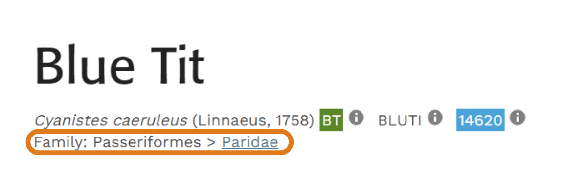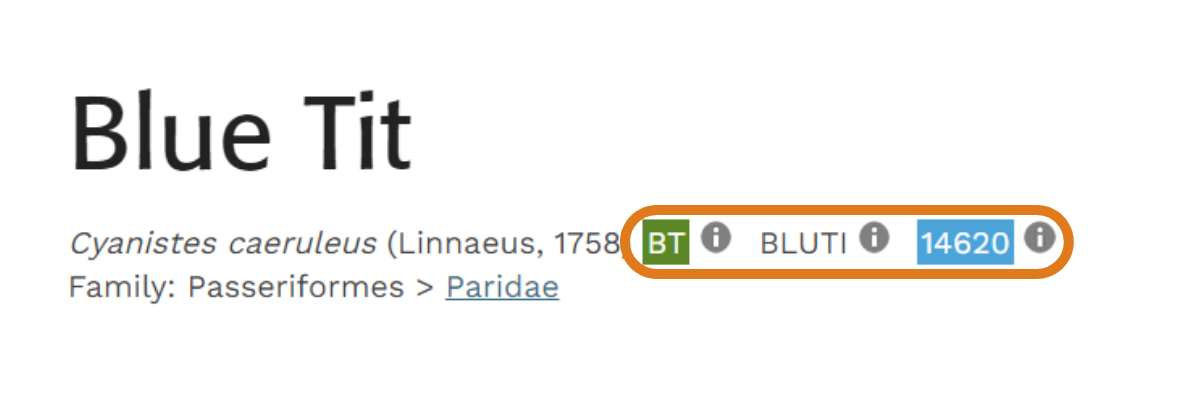 This page explains which information is provided in the Classification, names and codes section of each species page in BirdFacts.