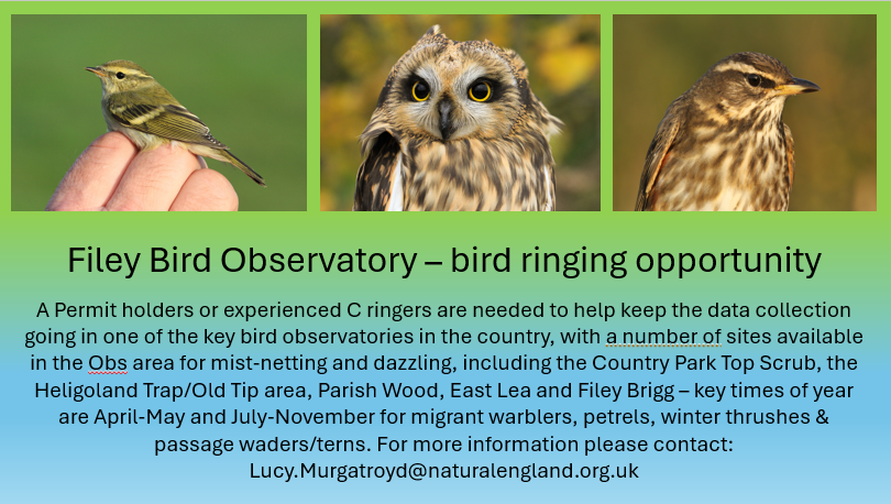 Opportunities for ringers holding a valid BTO permit will be posted on this page as and when they become available. These may be paid opportunities, but some may be voluntary positions or just opportunities to gain additional ringing experience. If you wish to advertise an opportunity or position on this page, please email ruth.walker@bto.org