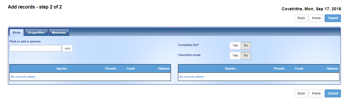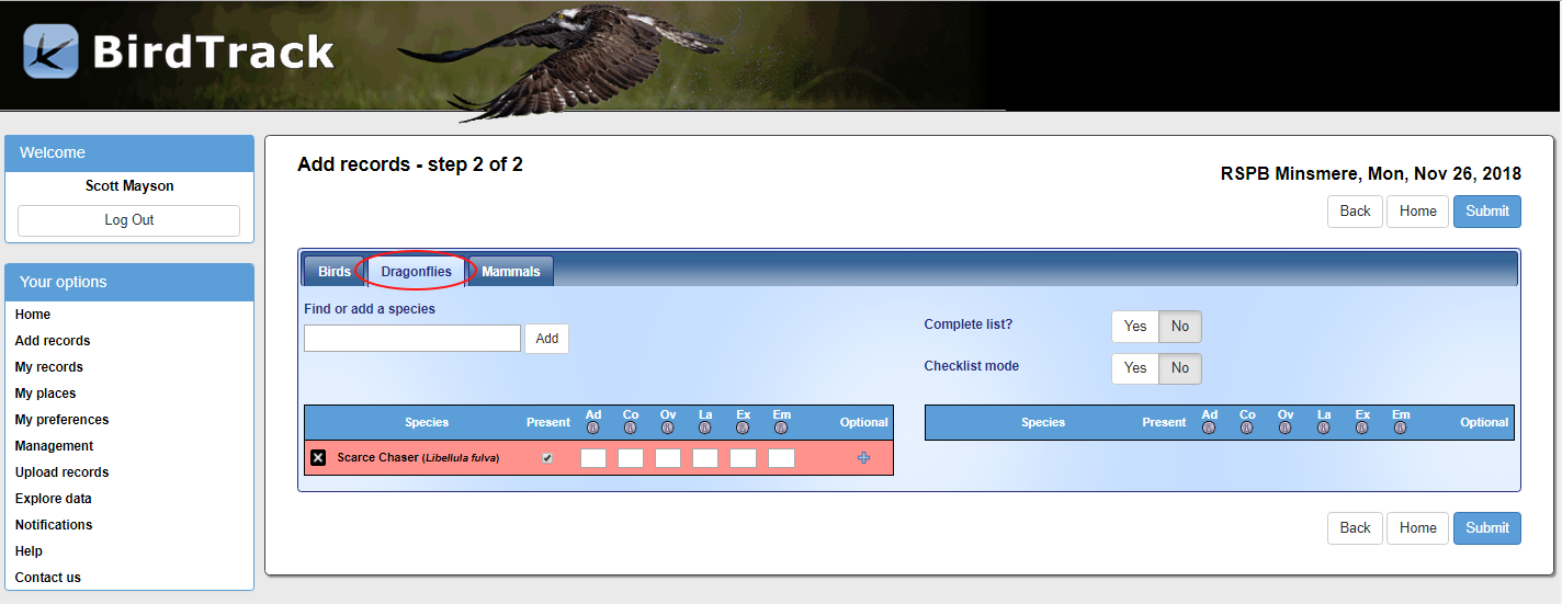 - How do I add records of non-avian taxa (e.g. butterflies or mammals)?