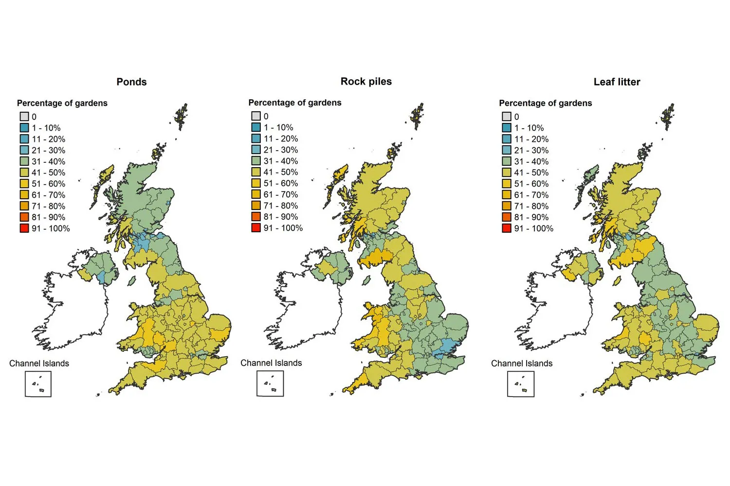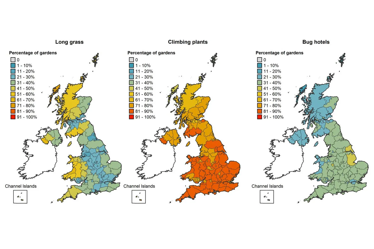 Gardenwatch succeeded in attracting a high level of participation, with good coverage across the whole of the UK. Surveyed gardens also included a broad range of garden types, giving an early indication that they are broadly representative of UK gardens more generally. There are a number of key take-home messages from our mapping of garden features.