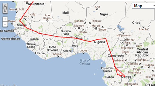 It was then that Clement surprised us again. Instead of heading for Italy, he turned south-west and we next heard from him 650km away in Valencia in Spain on the 10 July. He was obviously keen to move and we next picked him up two days later on migration at 22:07GMT over the Mediterranean having just left Cabo de Gata. Two hours later he was 90km further along his journey and only 35km from the African coastline. He made landfall in Oran, Algeria (see http://www.panoramio.com/photo/36794319) and pushed on southwards. This was migration in action and something the early pioneers of bird migration research could only dream about. By morning (08:00) he was on the upper northern slopes of the Atlas mountains– the last vestige of vegetation before the desert crossing!