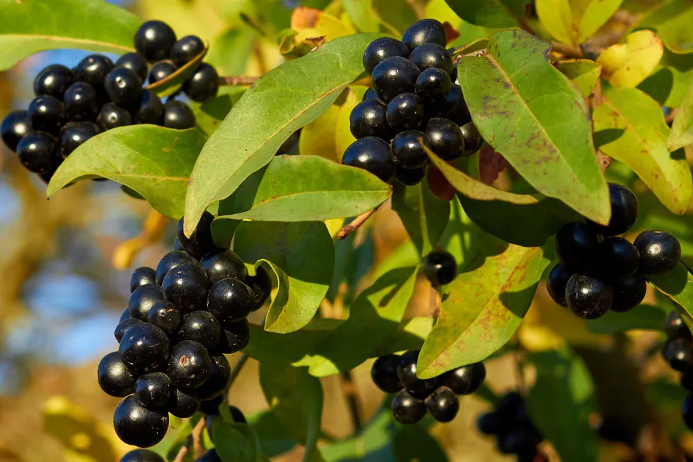 Wild Privet berries are favoured by: Blackbirds, Robins and sometimes Waxwings.
