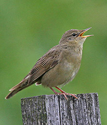 Here on the breeding grounds, Grasshopper Warblers nest in a range of wet and dry habitats including fens, marshland, rough grassland, moorland, thickets, young plantations and forest clearings. They are easily detected by listening for their distinctive song (atlas code = S) and can be upgraded to probable breeding by making a repeat visit to record the bird on territory (atlas code = T). Not surprisingly, there are rather few records of confirmed breeding as seeing adults carrying food (atlas code = FF), finding nests (atlas code = ON) or seeing recently fledged young (atlas code = FL) is very difficult and requires much luck!