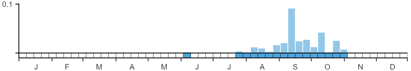 The graph shows when the species is present in the UK, with taller bars indicating a higher likelihood of encountering the species in appropriate regions and habitats.