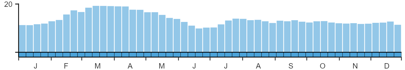 Survival is shown as the proportion of birds surviving from one year to the next and is derived from bird ringing data. It can also be used to estimate how long birds typically live.