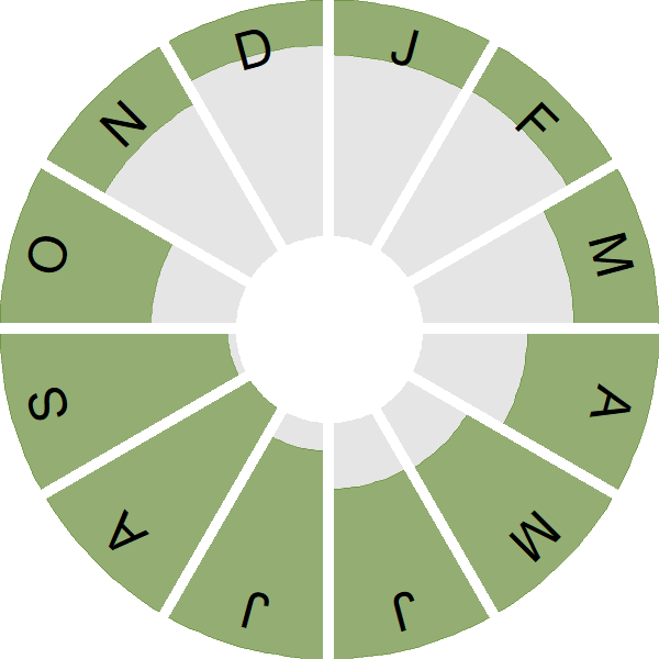 The graph shows when the species is present in the UK, with taller bars indicating a higher likelihood of encountering the species in appropriate regions and habitats.