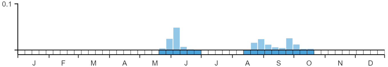The graph shows when the species is present in the UK, with taller bars indicating a higher likelihood of encountering the species in appropriate regions and habitats.