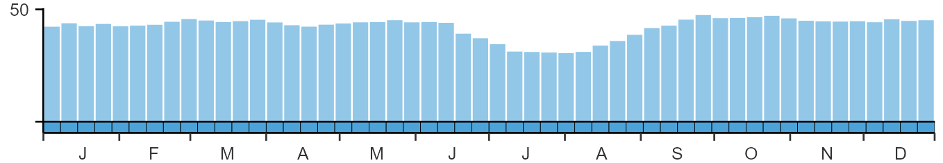 The graph shows when the species is present in the UK, with taller bars indicating a higher likelihood of encountering the species in appropriate regions and habitats.