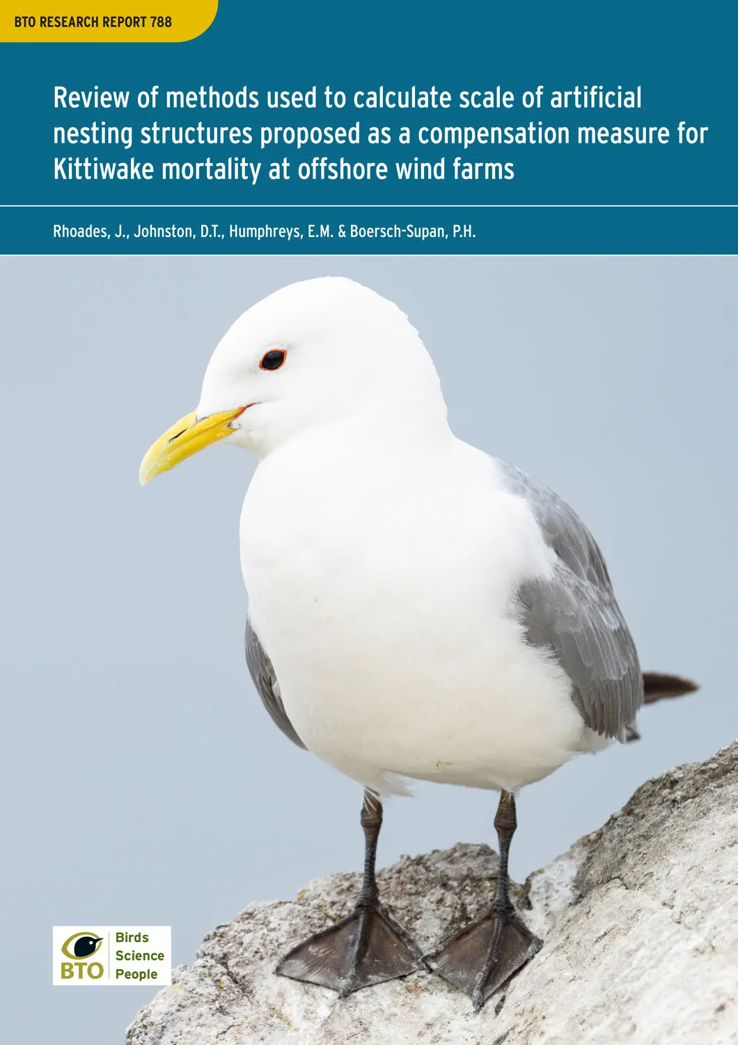 This report reviews the suitability of methods used to calculate the scale of Artificial Nest Structures (ANS) provided as compensation measures for Kittiwake mortality at offshore wind farms in English waters, due to turbine collision only. This report was revised in October 2025 and republished on 30-10-2025, correcting an error in Table 5. The recalculated compensation populations in the original report did not match the underlying fecundity values in the column headers. In addition, a link to helpful computer code was added to Appendix 3 (see below).