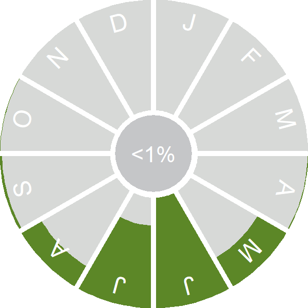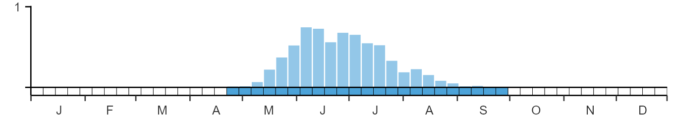 The graph shows when the species is present in the UK, with taller bars indicating a higher likelihood of encountering the species in appropriate regions and habitats.