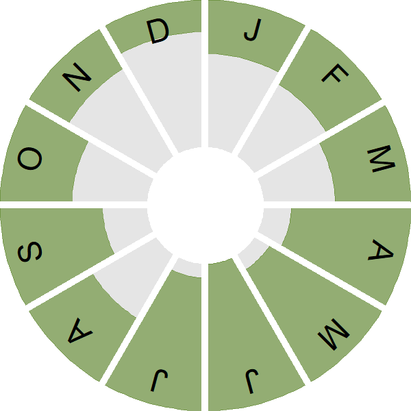 The graph shows when the species is present in the UK, with taller bars indicating a higher likelihood of encountering the species in appropriate regions and habitats.