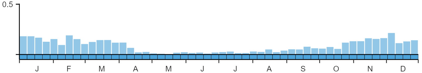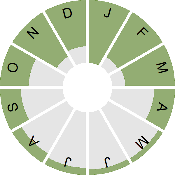 The graph shows when the species is present in the UK, with taller bars indicating a higher likelihood of encountering the species in appropriate regions and habitats.