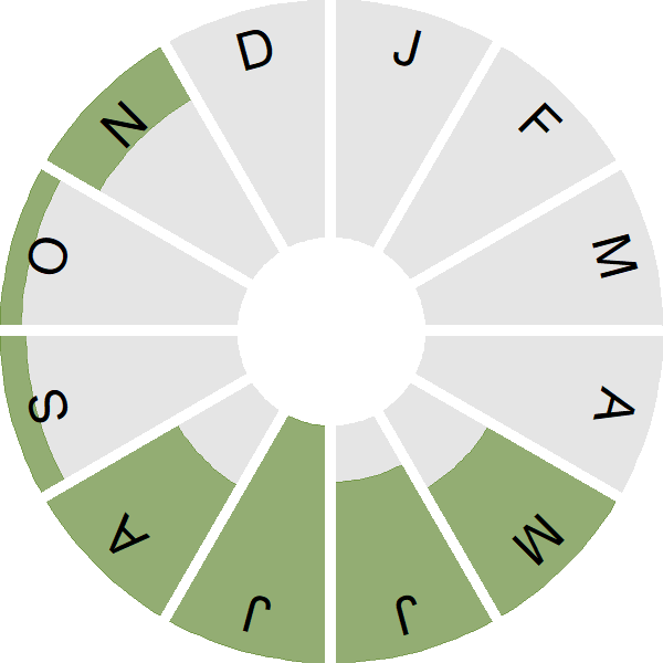 The graph shows when the species is present in the UK, with taller bars indicating a higher likelihood of encountering the species in appropriate regions and habitats.