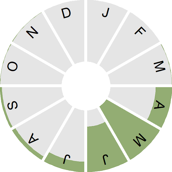 The graph shows when the species is present in the UK, with taller bars indicating a higher likelihood of encountering the species in appropriate regions and habitats.