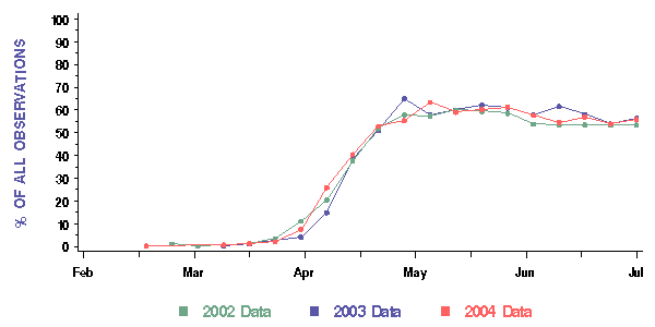- However, if we look at the proportion of lists with Swallows, this increased while Swallows arrived and then levelled off, indicating that Swallows actually occurred at a similar frequency throughout the breeding season.