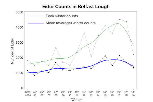 Eiders were a rarity in the lough as recently as the early 20th century, but around 3,500 Eiders now winter there annually.