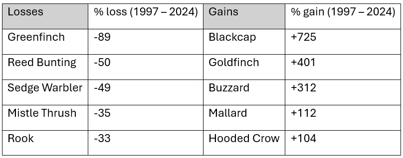 Among the success stories are increases in the number of House Sparrow. This familiar bird, which has undergone decades of decline across much of the UK, has seen modest growth in Northern Ireland since the mid 1990s.