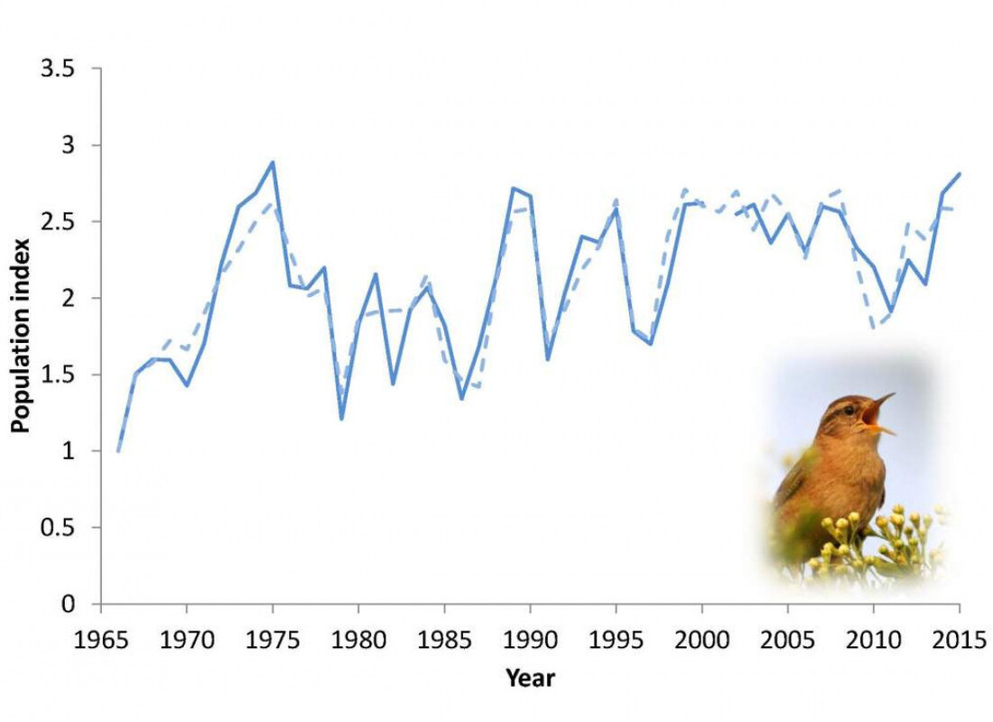 Secondly, a much discussed principle of climate change adaptation is that of having increasingly connected landscapes, with networks of semi-natural habitats. BTO-led analyses of woodland Common Birds Census (CBC) data demonstrated that bird populations in sites with a greater amount of woodland in the wider landscape are more likely to recover quickly from cold-winter events, from which we can infer that the greater connectivity in such landscapes facilitates more rapid immigration and colonisation of such sites (Newson et al. 2014). Further, changes in the structure of butterfly and bird communities in response to warming, revealed using a combination of Butterfly Monitoring Scheme (BMS) and CBC data, are related to the extent of semi-natural habitat in the wider landscape (Oliver et al. 2017). This work has direct policy-relevance, for example contributing to the evidence base in support of using agri-environment schemes to increase the extent of semi-natural habitats and reduce fragmentation.