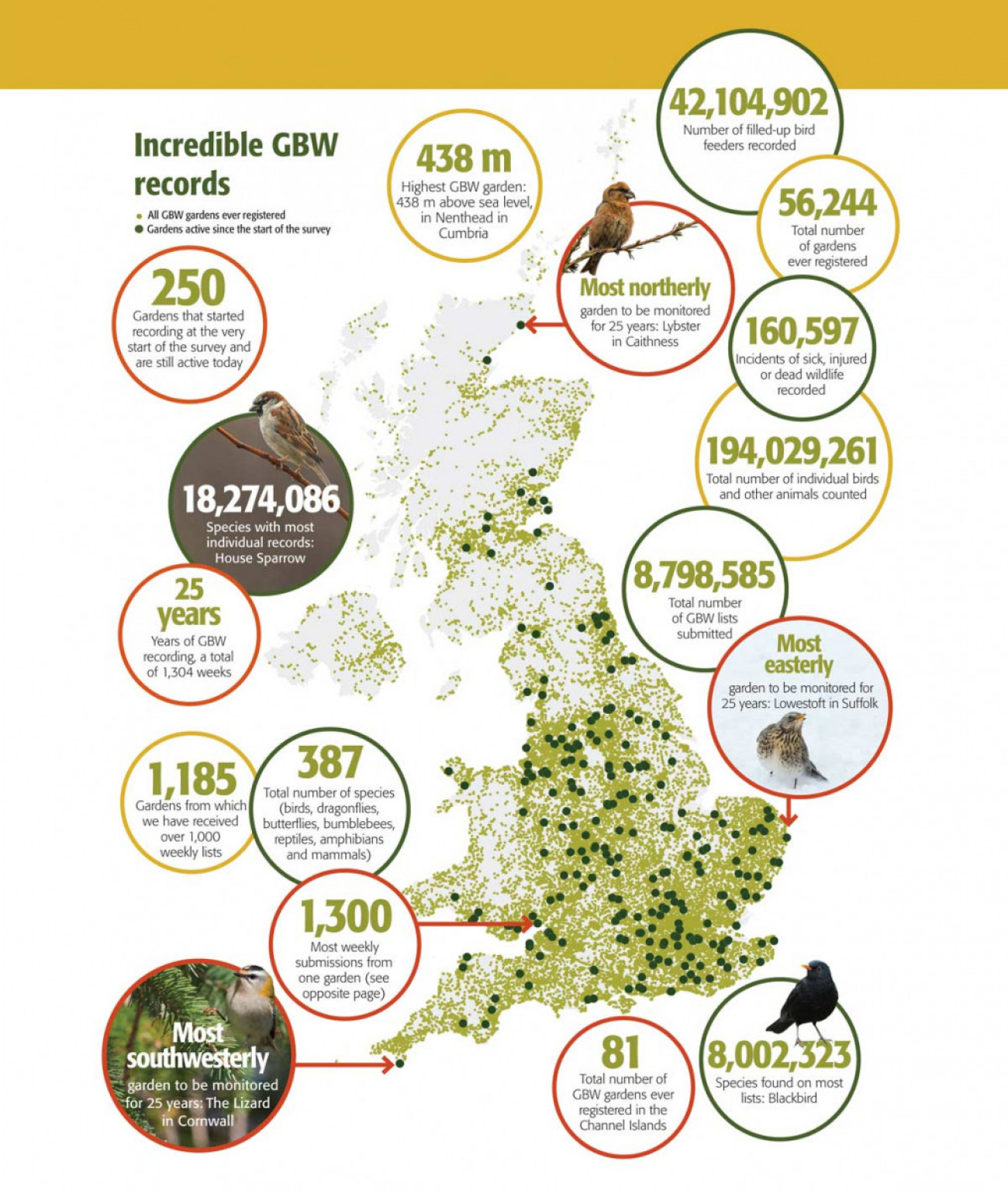 Thanks to our dedicated BTO Garden BirdWatch participants we now have a complete quarter-century of weekly garden bird observations from the length and breadth of the country, richly contributing to the BTO’s wider research on urban environments.