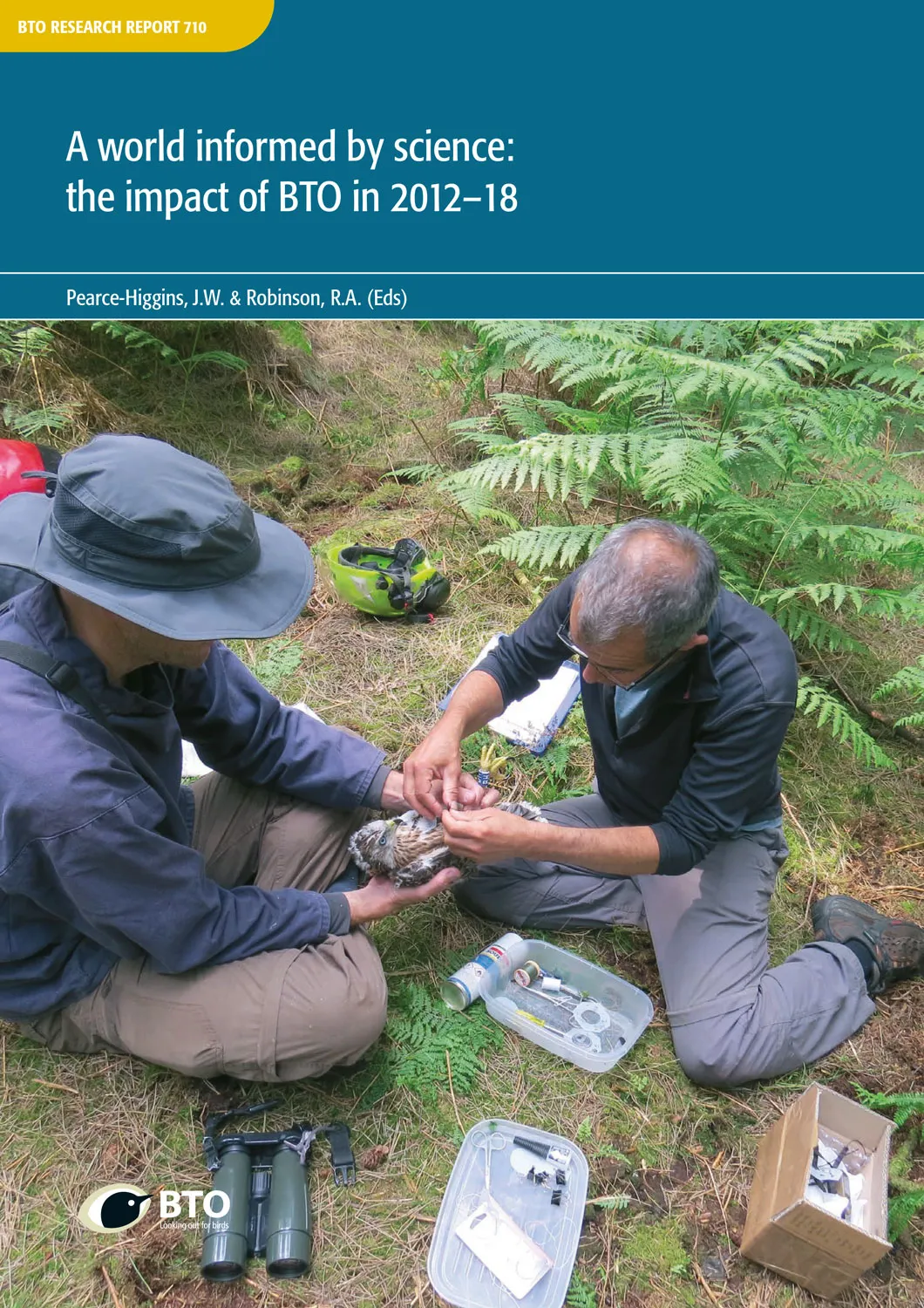 This report provides an assessment of the impact of BTO science over the period 2012–2018, measured in terms of knowledge and information, policies and management, species and habitats, people and ...