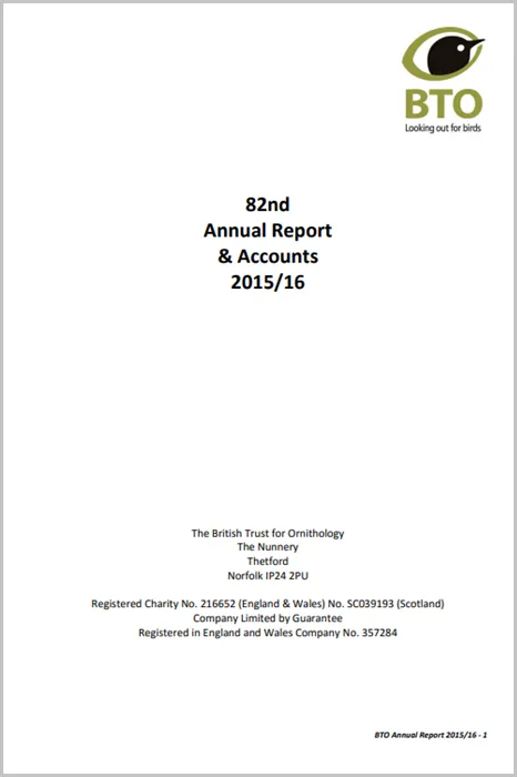 BTO publishes various reports, from those covering the annual results of core surveys, through scientific studies, and on to those produced in partnership with other organisations. Many of these are published as BTO Research Reports, which includes BBS reports, Waterbirds in the UK (WeBS) reports and SMP reports. You can access all of our reports from here, though note that we are currently updating the reports section, working backwards through time to bring all of the report pages into a consistent format. You can read our Annual Report and Accounts in the Governance section.