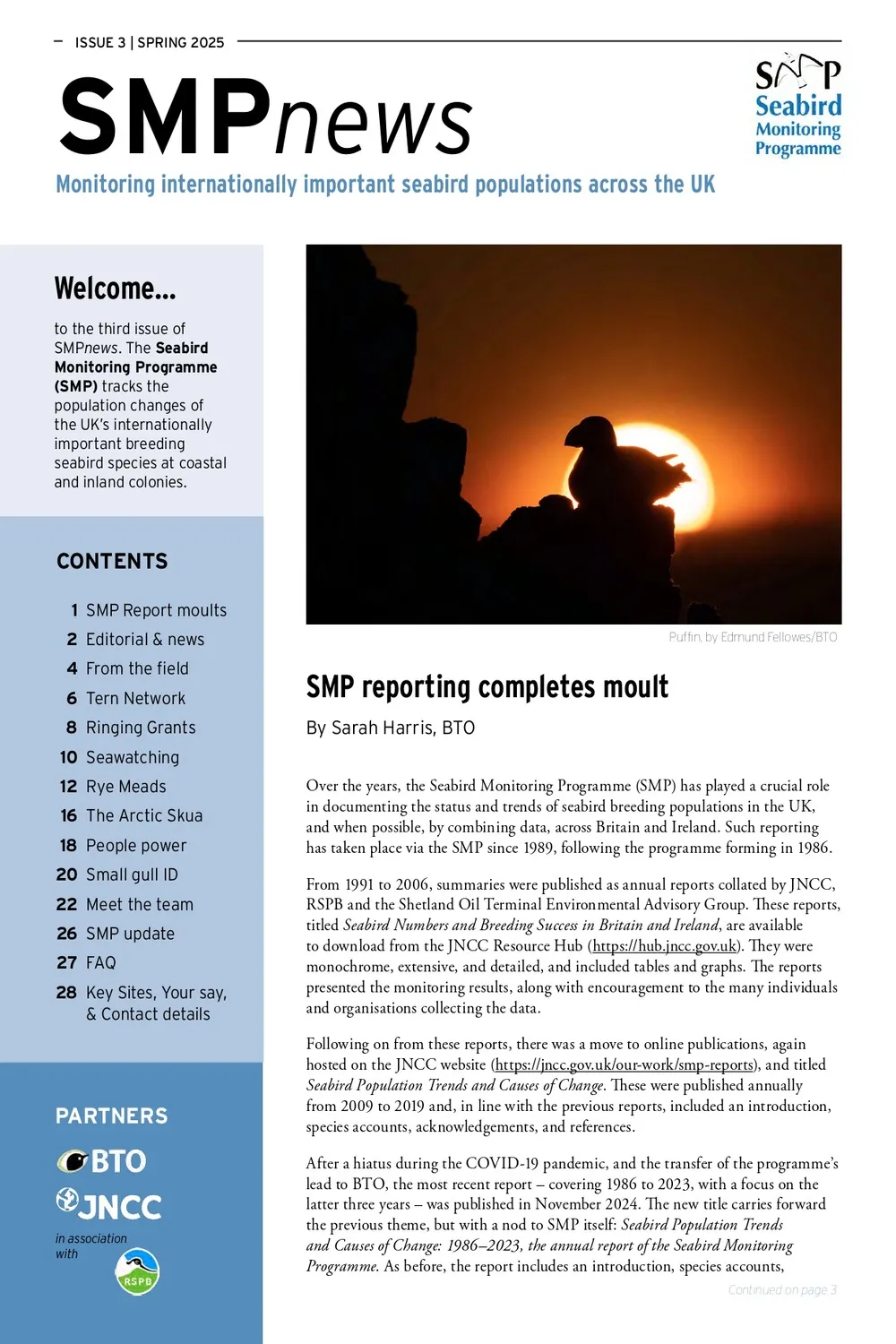 This report presents the latest seabird population trends in breeding abundance and productivity using data from the Seabird Monitoring Programme (SMP).