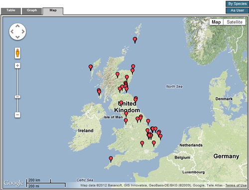 From here use the ‘Dates’ and ‘Year’ filter to select the year you wish to view. Use the ‘Places’ filter to display the records either globally, by country or sub region, or for one of your places.